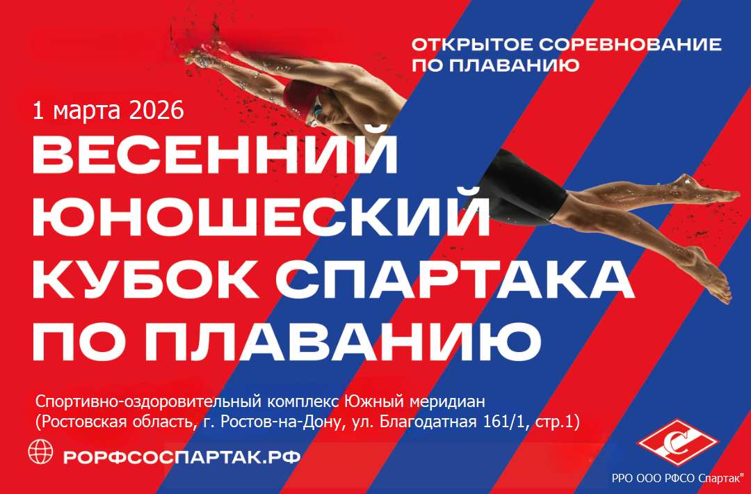 Приглашаем принять участие в Весеннем юношеском кубке Спартака по плаванию - 01.03.2026!