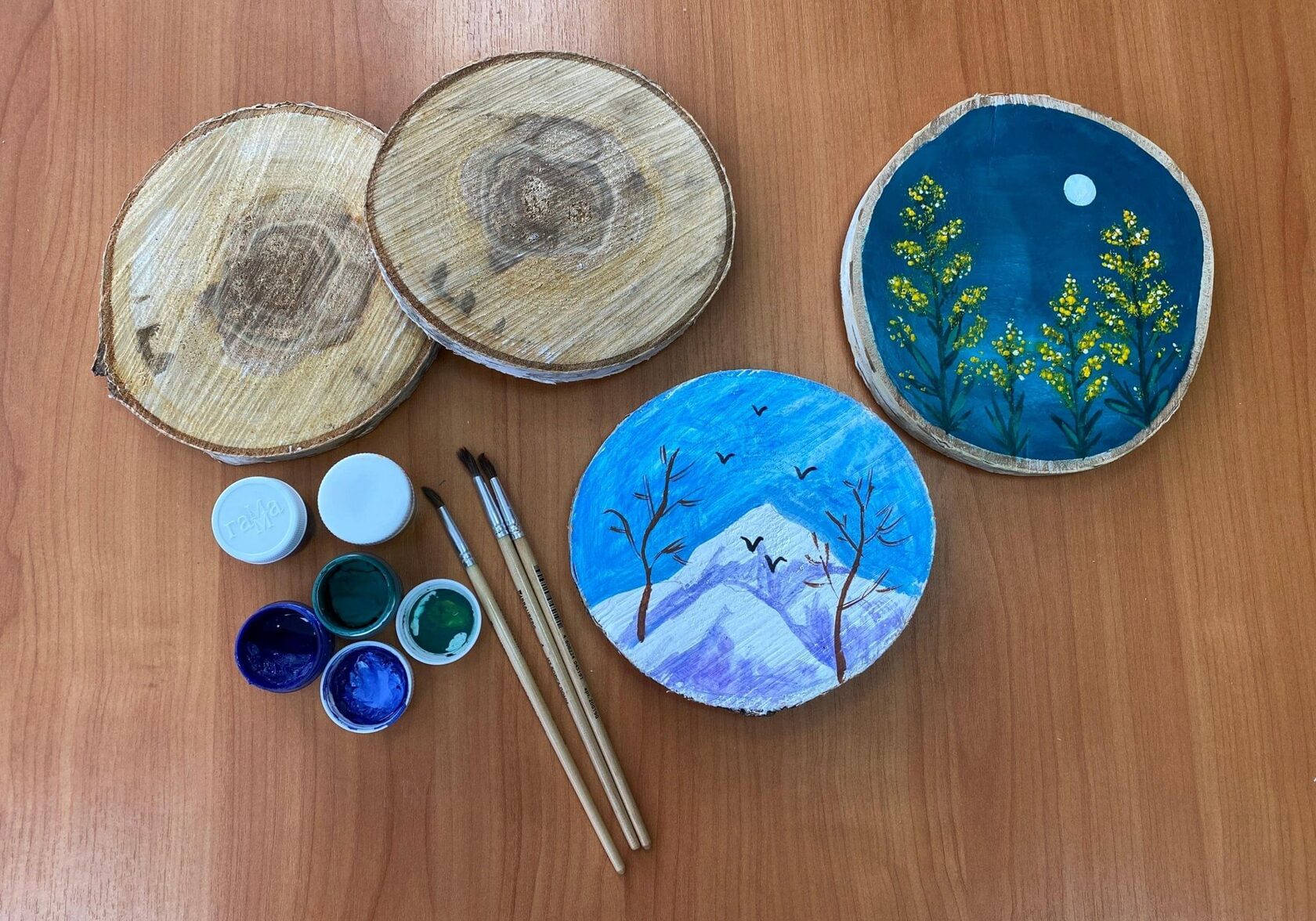 - Результат: Уникальная роспись спила, сделанная своими руками, станет памятным сувениром и талисманом, хранящим тепло ваших рук.